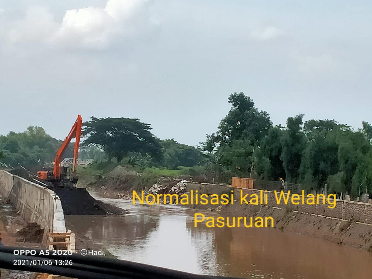 Abdul Hamid warga Kelurahan Karang Ketuk Kecamatan Gadingrejo kabupaten Pasuruan Rabu (6/1/2021) mengaku senang dan bersyukur sekali dengan dibangunnya serta dikeruknya kali Welang.