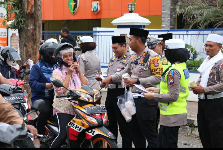“Kami berbagi takjil sambil menyampaikan pesan untuk para pengendara tentang ketertiban lalu lintas berikut resikonya jika nekat melanggar,” kata AKP Fahmi.