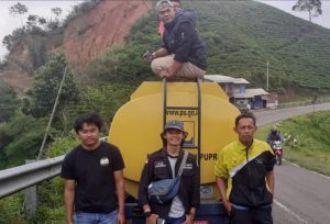 Usan salah seorang petugas dari PDAM menyampaikan bahwa kami bersama rekan bertanggung jawab untuk memenuhi kebutuhan akan ketersediaan air kepada para pengungsi selama dalam pengungsian.