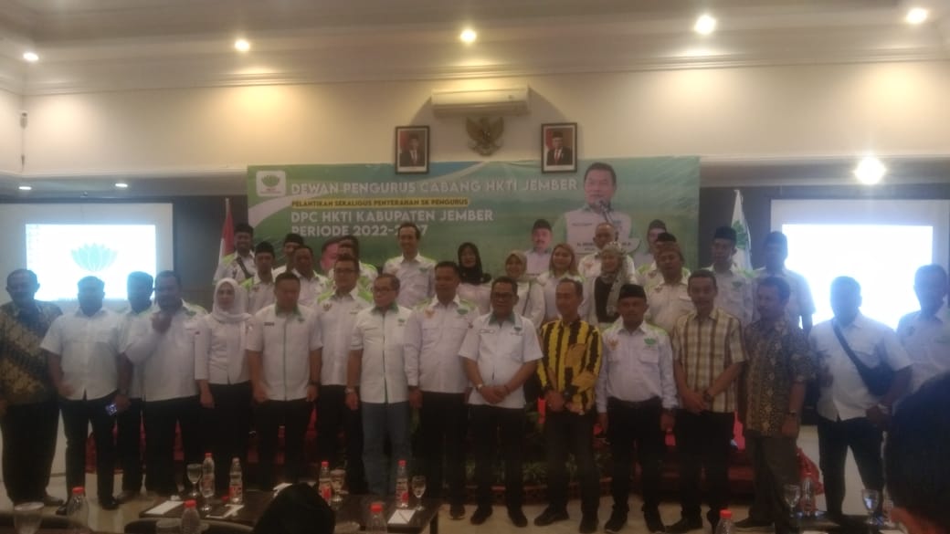 JEMBER, transnews.co.id – Pelantikan sekaligus penyerahan SK kepda H. Muhammad Sholeh, SH. Msi., sebagai ketua Dewan Perwakilan Cabang (DPC) Himpunan Kerukunan Tani Indonesi (HKTI) Kabupaten Jember yang baru.