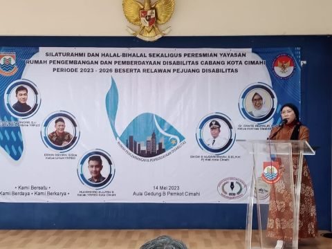 Ketua Komisi Nasional Disabilitas (KND) RI Dr. Dante Rigmalia, M.Pd saat memberikan sambutan di Gedung Aula Pemkot Cimahi, Minggu (14/05/2023).