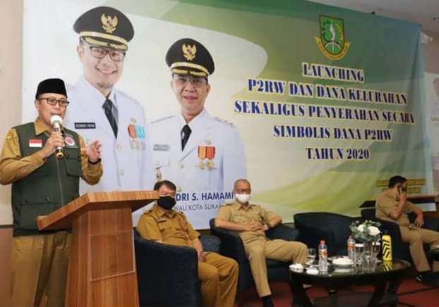 Kota Sukabumi,transnews.co.id-Wali Kota Sukabumi Ahmad Fahmi secara simbolis menyerahkan dana kelurahan sekaligus melaunching Program Pemberdayaan Rukun Warga (P2RW).