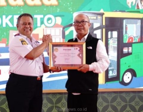 Piagam penghargaan tersebut diserahkan oleh Kepala Dinas Perhubungan Provinsi Jawa Timur Dr. Nyono dan diterima oleh Direktur Bisnis Mikro, Ritel & Usaha Syariah Bank Jatim R. Arief Wicaksono dalam acara Peresmian Operasional Bus Trans Jatim Koridor VI (Mojokerto – Sidoarjo) di Terminal Mojosari, Mojokerto. Jum’at (30/5/2025).