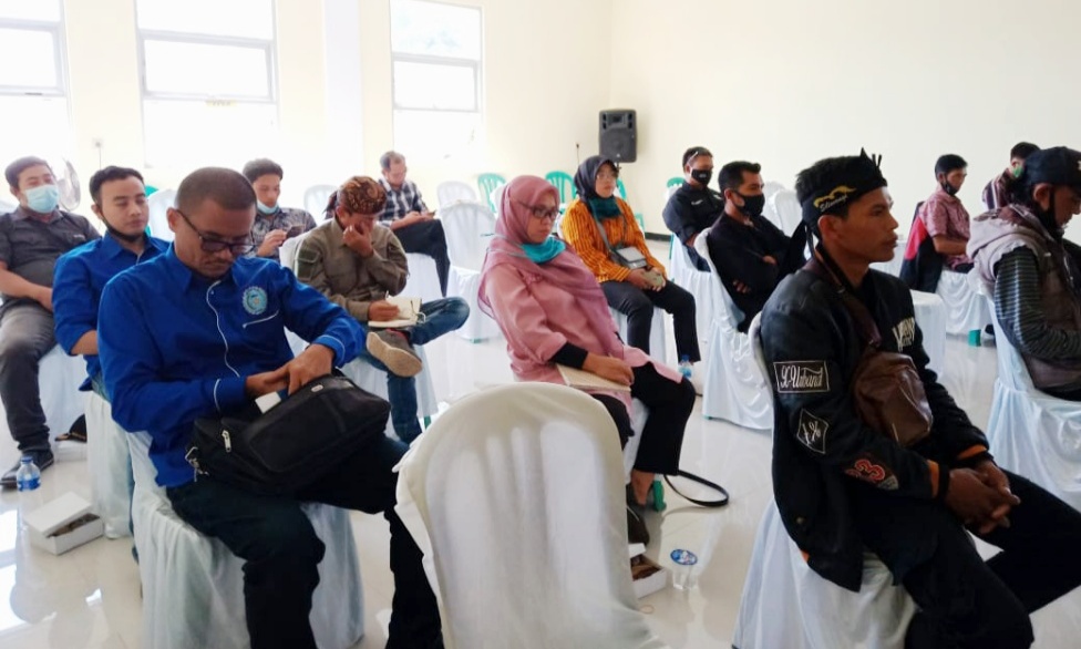 Garut,transnews.co.id- Pengurus Bumdes tiga Kecamatan di Garut Selatan mengikuti Bimtek di Aula Kantor Kecamatan Caringin Garut,Kamis (8/4/2021).