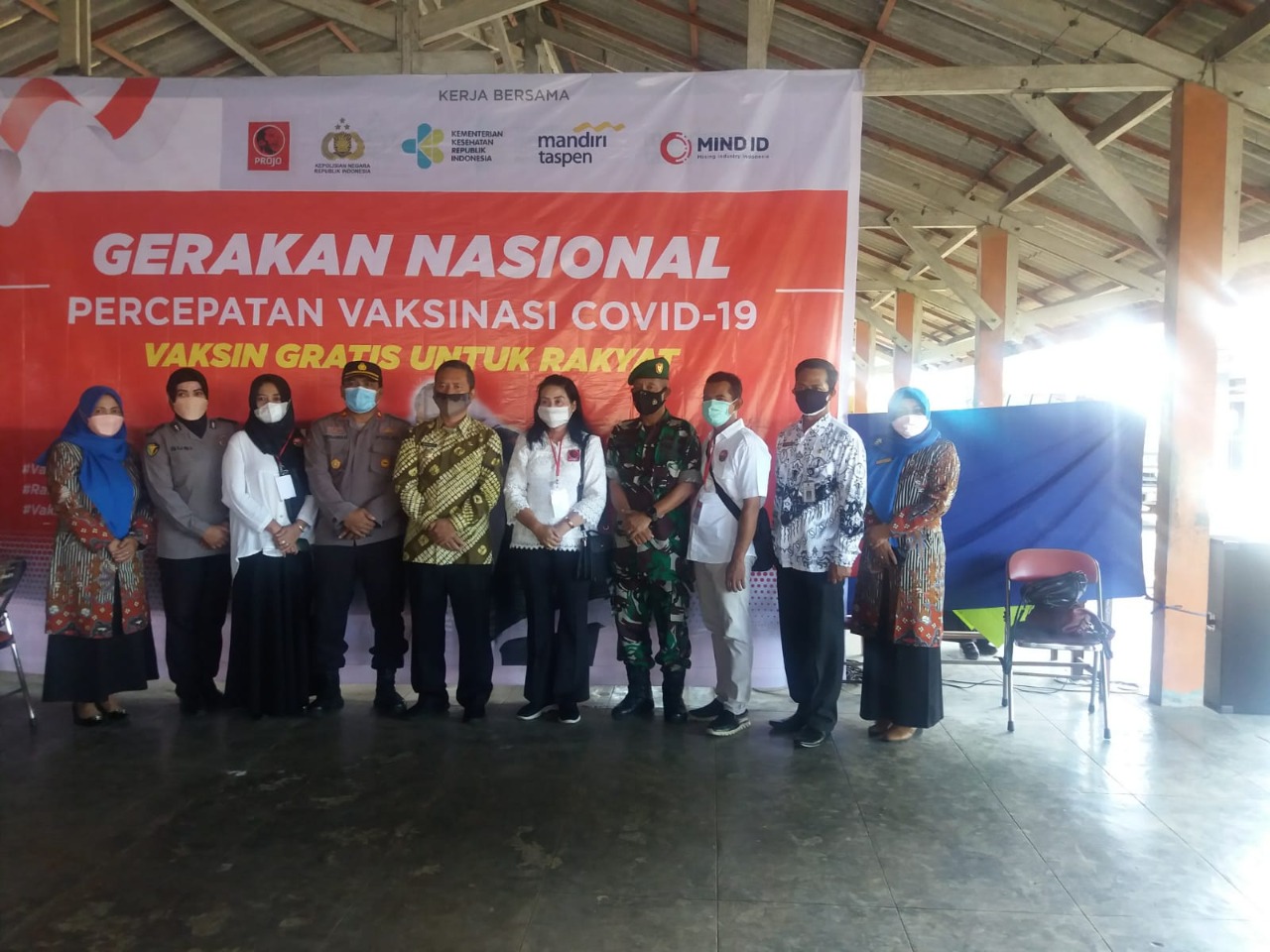 Teknis pelaksanaan vaksinasi meliputi, pendaftaran, pengukuran tensi, screening kesehatan, penyuntikan vaksin dan observasi setelah vaksin selama ± 30 menit.