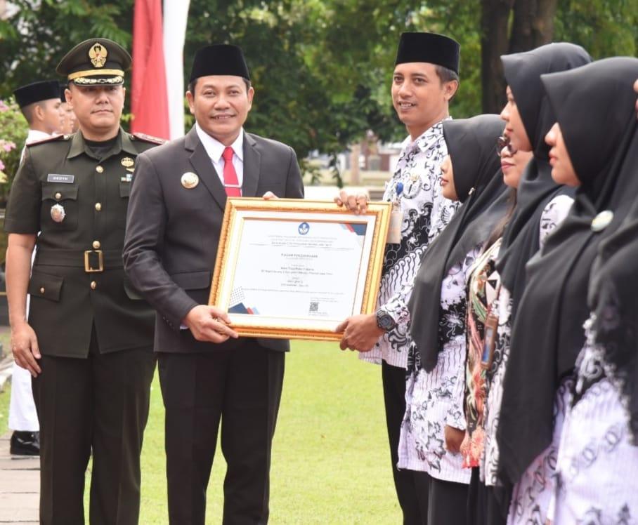 “Pendidikan adalah hak asasi dan hak sipil yang melekat dalam diri setiap insan baik sebagai pribadi maupun warga negara,” kata Bupati Subandi membacakan sambutan dalam upacara tersebut.