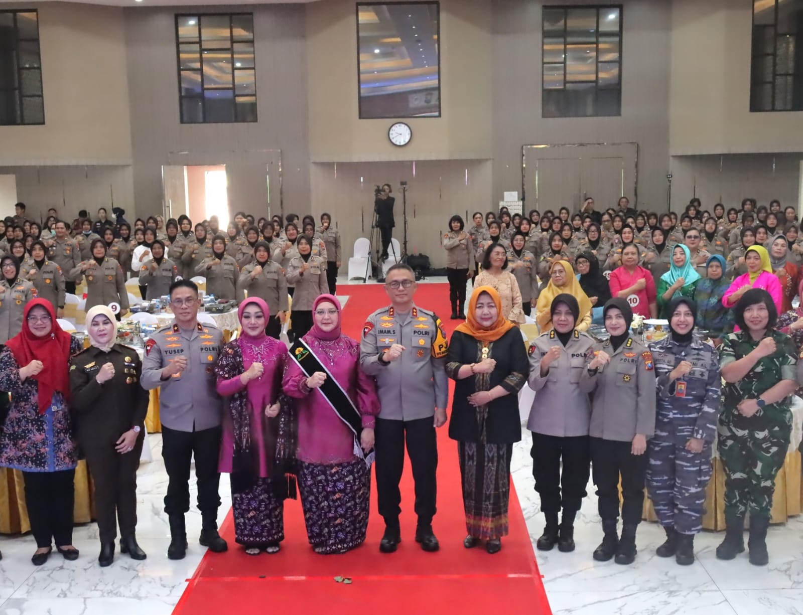 Hadir dalam acara tersebut, Kapolda Jawa Timur Irjen Pol Imam Sugianto, Waka Polda Jatim Brigjen Pol Akhmad Yusep Gunawan, didampingi pejabat utama (PJU) Polda Jatim, serta Ketua Bhayangkari Daerah Jawa Timur, Ny. Ade Imam Sugianto, Wakil Ketua Bhayangkari Ny. Gita Yusep, Kepala Dinas Komunikasi dan Informatika Provinsi Jawa Timur, Sherlita Ratna Dewi Agustin serta Kepala Dinas Pemberdayaan Perempuan Prov. Jatim, Kepala Dinas Pemberdayaan Perempuan, Perlindungan Anak dan Kependudukan (DP3AK) Provinsi Jawa Timur, Tri Wahyu Liswati