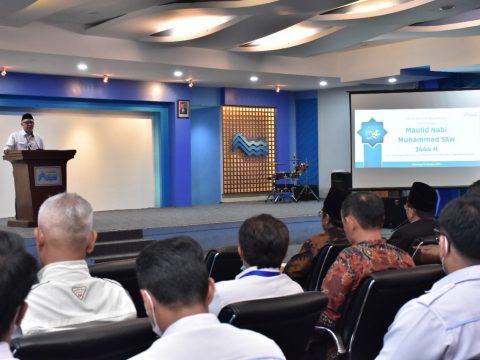 BOGOR, transnews.co.id – Melalui pengjian bulanan rutin, perumda Air Minum Tirta Kahuripan Kabupaten Bogor bersinergi dengan pegawainya sekaligus memperingati Maulid Nabi Muhammad SAW 1444H bersama Direksi, Dewan Pengawas di aula kantor pusat Perumda Air Minum Tirta Kahuripan, Rabu (12/10/2022).