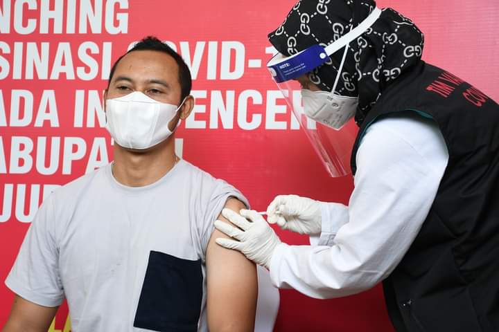 Cianjur,transnews.co.id-Pemkab Cianjur hari Kamis (28/1/2021) melakukan vaksinasi tahap pertama meliputi pimpinan daerah yang tergabung dalam Forkopimda (Forum Pimpinan Daerah) Kabupaten Cianjur sebanyak 10 orang 9 orang ketua organisasi profesi 1 orang dari public figure Atep pemain sepakbola asal Cianjur.