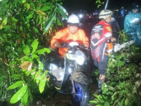 Tidak sekedar menyebabkan kemacetan, seorang pengendara motor warga asal Kabupaten Banyuwangi yang sedang melintas tertimpa batang pohon. Batang pohon tersebut terseret material tanah longsor, tuturnya. (lrfak)