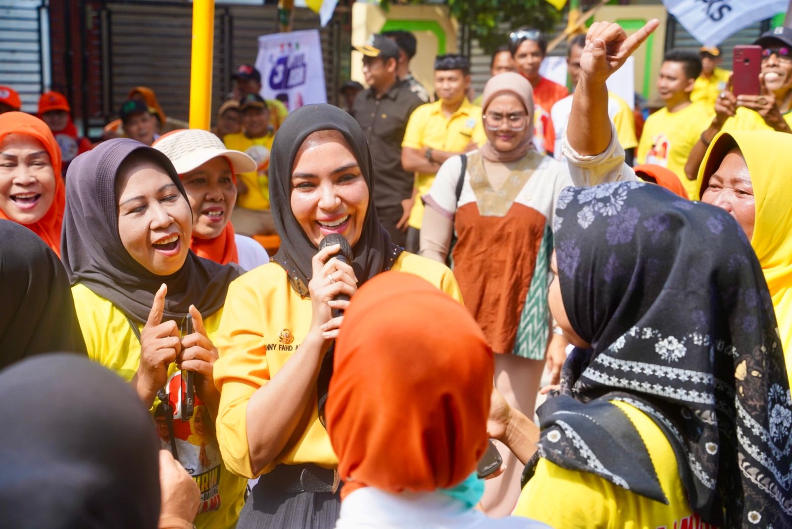 “Kami sangat senang bu Ranny mau turun langsung ke level bawah untuk menggerakan massa dibawah untuk memenangkan imam ririn. Terlihat struktur makin bergairah dengan turun nya bu Ranny sebagai duta perempuan partai Golkar. Mari songsong kemenangan. Lanjutkan!” Kata Dindin.