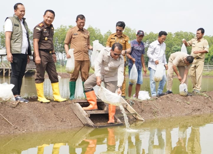PASURUAN, transnews.co.id – Pj Bupati Pasuruan, Nurkholis, bersama Kepala Kejaksaan Negeri (Kajari) Kabupaten Pasuruan, Teguh Ananto menebar puluhan ribu benih ikan bandeng ke Tambak Petani Bandeng di Desa Patuguran, Kecamatan Rejoso, Selasa (18/2/2025).