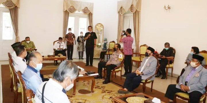 Wakil Bupati Sukabumi H. Iyos Somantri Mewakili Bupati, menerima Kunjungan Kerja Forum Kerukunan Umat Beragama (FKUB) Kota Manado yang dipimpin oleh Ketua FKUB Kota Manado Pendeta Renata Ticonuwu di Pendopo Sukabumi, Kamis (15/4/2021)