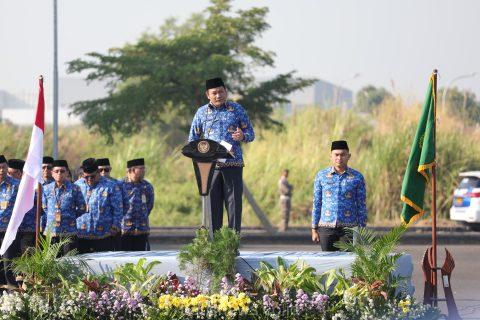 Dalam sambutannya, Subandi mengajak seluruh ASN di Kabupaten Sidoarjo untuk menjadi ASN yang menjalankan tugas-tugasnya dengan berpegang teguh pada nilai-nilai integritas dan kedisiplinan.