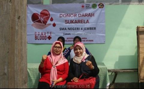 JEMBER, transnews.co.id || Puluhan siswa SMAN 4 Kabupaten Jember melaksanakan kegiatan donor darah yang digelar PMR Wira SMAN 4 Jember bekerjasama dengan Unit Donor Darah (UDD) PMI Kabupaten Jember, Jumat (26/1).