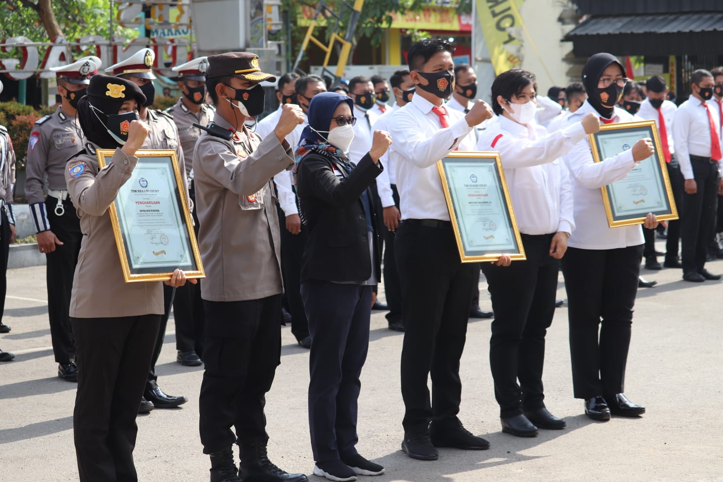 Penyerahan piagam penghargaan tersebut bertempat di lapangan apel Polres Tulungagung, Jumat (10/09/2021) dihadiri PLT Sekjen Komnas Perlindungan Anak Indonesia Lia Latifah, Koordinator Nasional TRC PPA Jeny Claudya Lumuwa, Wakapolres Tulungagung Kompol Christopher Adhikara Lebang, PJU Polres dan Personil Polri serfa ASN Polres Tulungagung