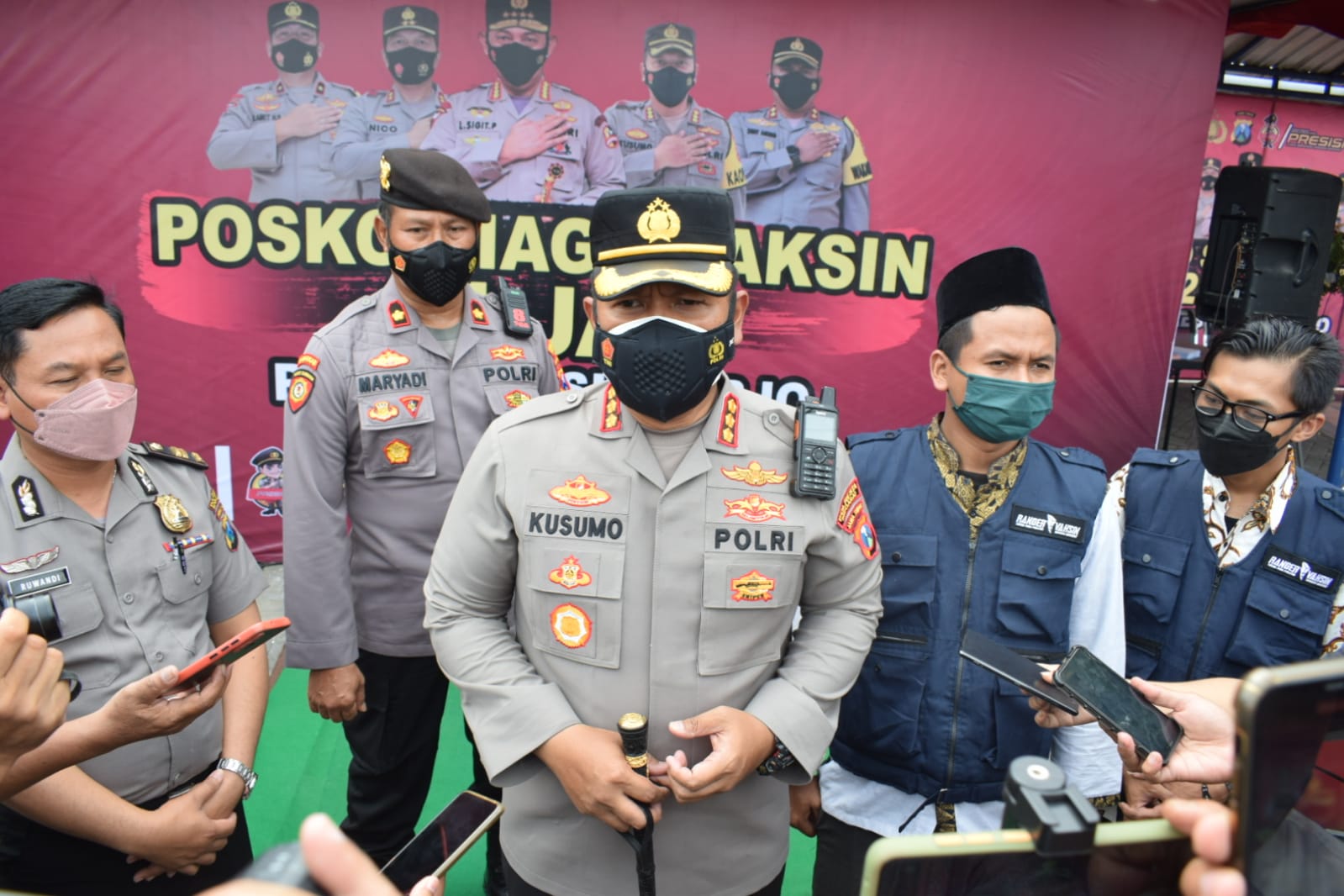 “Di Posko Siaga Vaksin 24 Jam yang bertempat di pos polisi bundaran Taman Pinang Indah, setiap hari petugas tenaga kesehatan kami siap melayani kebutuhan vaksinasi Covid-19 bagi masyarakat. Jam berapa pun silahkan datang, agar semua masyarakat dapat tervaksin,” jelas Kapolresta Sidoarjo Kombes Pol. Kusumo Wahyu Bintoro, Rabu (27/10/2021).