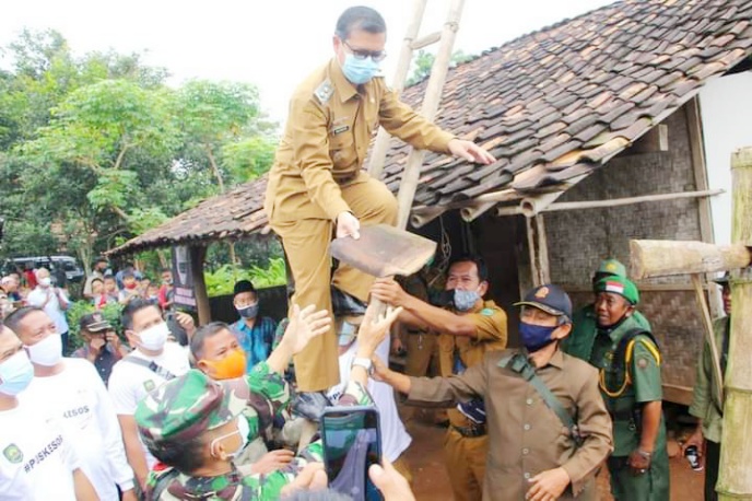 Perbaikan rumah dilakukan awal secara simbolis oleh Wakil Bupati Subang Agus Masykur Rosyadi.