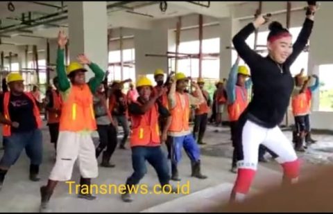 SDM PT Diatasa Jaya Mandiri, sebelum melaksanakan pekerjaan nya masing-masing, lengkap dengan seragam proyek dan K3 melakukan pemanasan dengan melakukan senam erobik dengan di pandu oleh seorang instruktur.