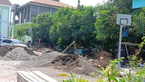 Tampak tumpukan material pasir dan batu split untuk rehabilitasi dan renovasi Sarana dan Prasarana sekolah madrasah Jawa timur 1, Kamis (22/2/2024)