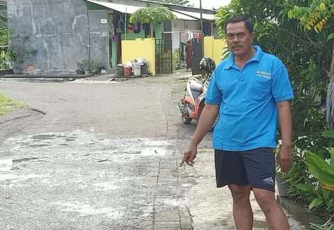 Bagaimana tidak, pekerjaan yang baru selesai dikerjakan, sekitar lima bulan yang lalu saja, kondisinya sudah memprihatinkan. Kalau yang dari jalan raya pavingnya itu bagus, tapi di sepanjang jalan depan rumah saya sampai di barat, pavingnya hancur semua. Paving block sudah kelihatan warna coklat seperti sertu urugan, ucapnya.