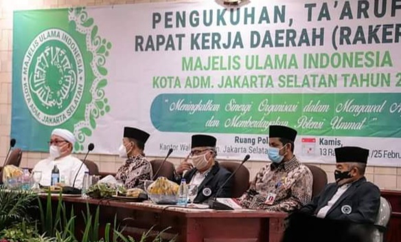 Rakerda digelar untuk membahas program kerja 2021, sekaligus pengukuhan pengurus MUI Jakarta Selatan masa khidmat 2021-2025.