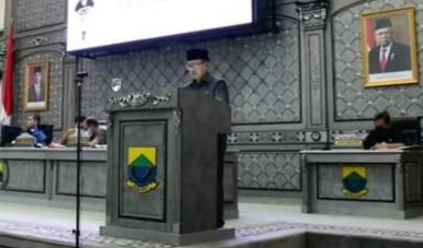 Agenda rapat Paripurna terkait Penyampaian Nota Pengantar Bupati Cianjur mengenai Laporan Keterangan Pertanggungjawaban (LKPJ) Bupati Cianjur Tahun Anggaran 2020.