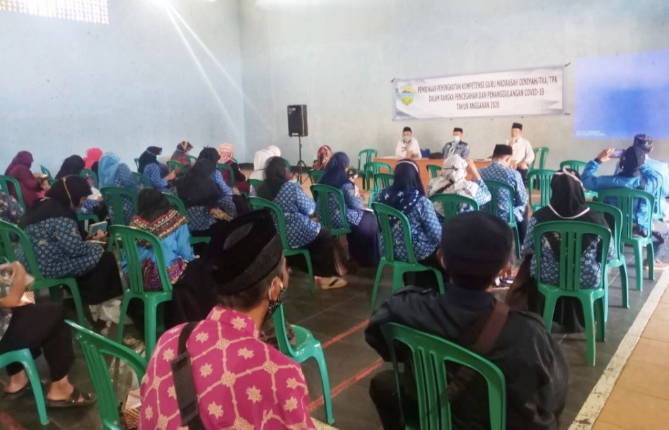 Kab. Tasikmalaya,transnews.co.id-Ratusan guru Madrasah Diniah Takmiliyah termasuk guru guru TKA serta TPA di Empat Kecamatan Kab Tasikmalaya mengikuti pembinaan Kompetensi dan penanggulangan covid 19 di GOR Desa Hegarwangi Kecamatan Bantarkalong Tasikmalaya,Rabu (2/12/2020).