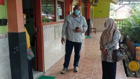 Wartawan Transnews.co.id saat konfirmasi terkait rehabilitasi dan rekonstruksi sarana dan prasarana sekolah MIN dan MTSN di wilayah kabupaten Bojonegoro, Kamis (16/12/2021). (Hadi/Transnews.co.id)