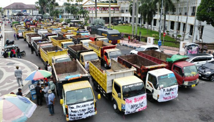 Lebih lanjut, Samsul korlap aksi para sopir menyampaikan jika untuk hari ini ada 75 Truk dan ribuan orang yang datang yaitu keluarga kami yang sudah geram, pasalnya hampir 2 Minggu tidak bisa kerja mau makan apa. Selain itu ada UMKM juga yang datang, ini terdampak juga.