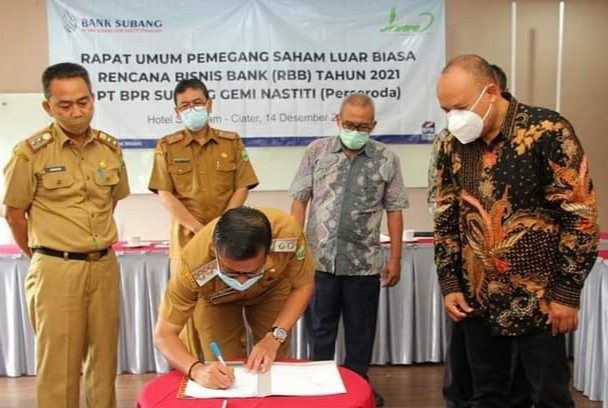 Sementara itu Direktur PT. Bank Perkreditan Rakyat Subang Gemi Nastiti (Perseroda) Anton Abdul Rosyd dalam laporannya menjelaskan bahwa RUPS tersebut memutuskan beberapa point diantaranya menyetujui dan mengesahkan Rencana Bisnis Bank (RBB) tahun 2021