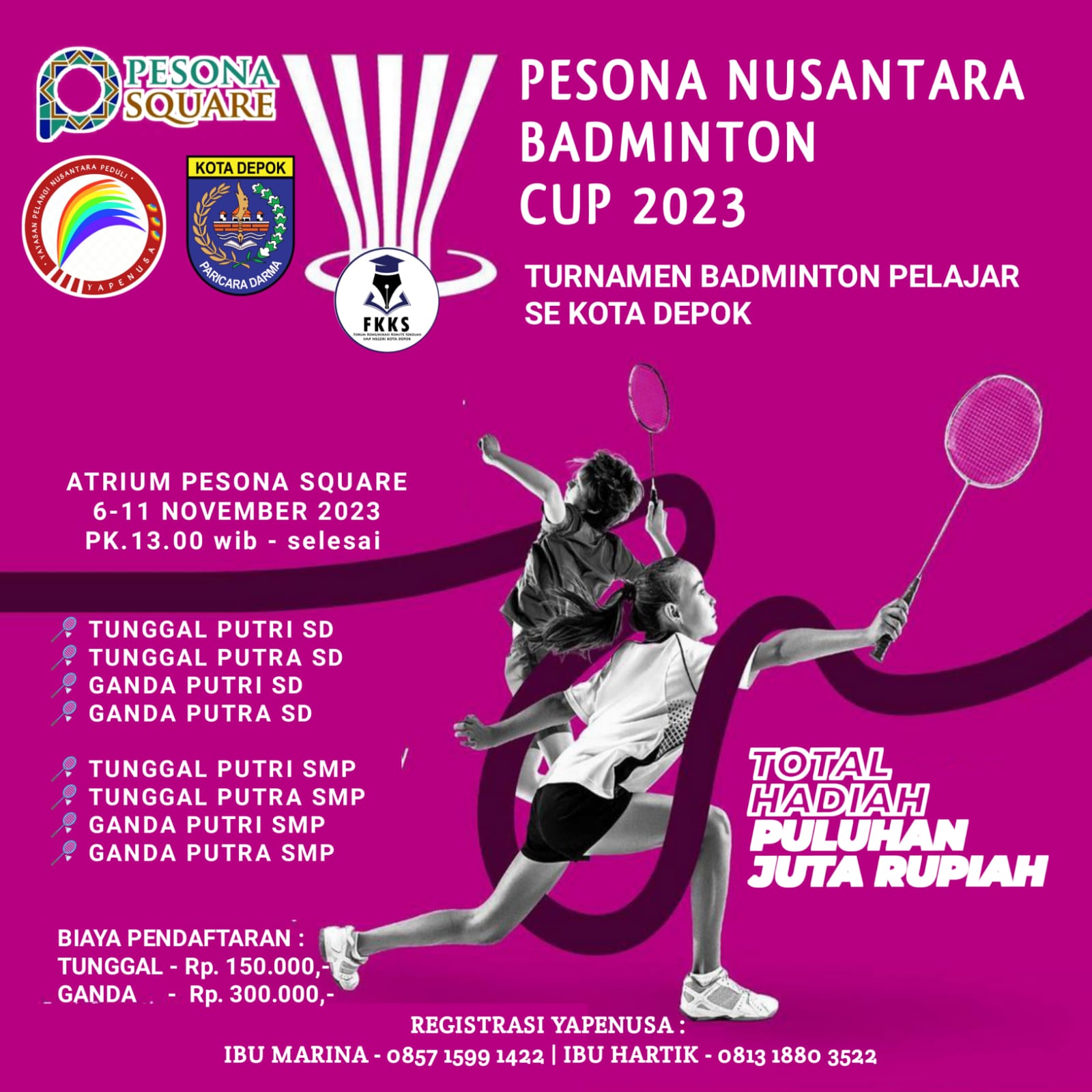 Turnamen badminton pelajar se-Kota Depok tersebut juga digelar dengan menggandeng Pesona Square dan Dinas Pendidikan (Disdik) Kota Depok.