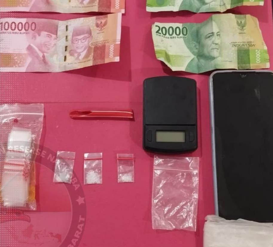 Adapun barang bukti yang diamankan ,3 (satu) paket plastik klip bening yang berisikan butiran kristal bening yang di duga narkotika jenis sabu ( bruto 1,06 gram),1 (satu) buah timbangan digital warna hitam,1 (satu) unit handphone android merk REDMI 12C warna hitam,1 (satu) ball plastik klip bening kosong,1 (satu) buah plastik asoy bening,1 (satu) buah alat skop terbuat dari pipet warna merah,uang tunai senilai Rp.240.000 (dua ratus empat puluh ribu rupiah).