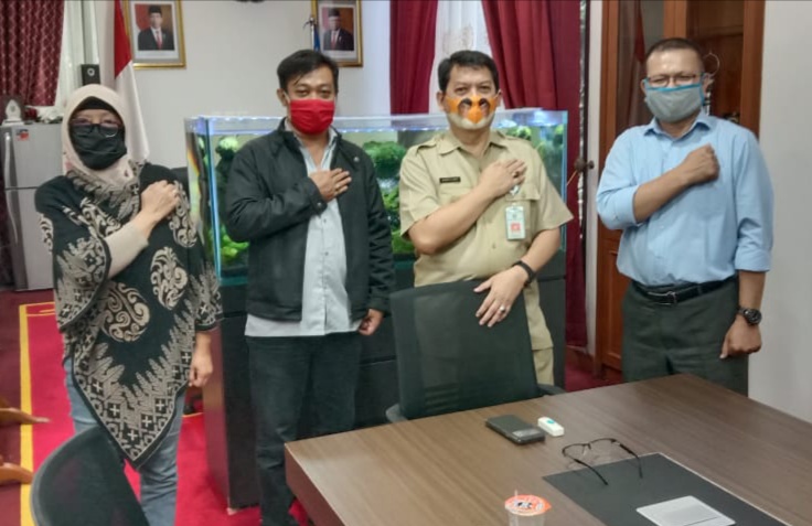 DEPOK, transnews.co.id | Pengurus baru Sekber Wartawan kota Depok periode 2020-2023 yang diwakili Ketua Sekber, Tony Yusep, Sekjen Sekber Riki dan Presidium, Yeni beraudiensi dengan Sekda kota Depok di Balaikota, Selasa (15/9/2020).