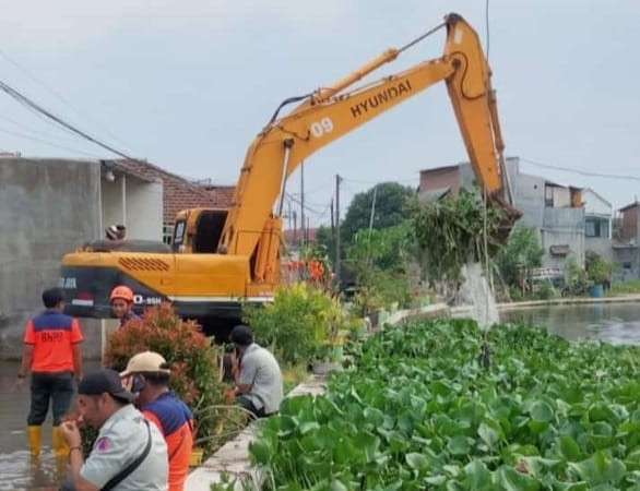 Sedangkan, Excavator long arm milik Dinas PU SDA Jatim beroperasi di Sungai Desa Tanjungsari. Sebelumnya, di pagi hari, Tim BPBD Jatim bersama Kades Trosobo, Heri Achmadi, juga telah melakukan susur sungai untuk mengetahui titik penyumbatan Sungai Buntung akibat eceng gondok dan sampah.