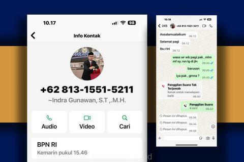 Menariknya, si penipu dengan berani menghubungi Rini Lestari sekitar pukul 09.50 WIB melalui WhatsApp tapi tidak diangkat.