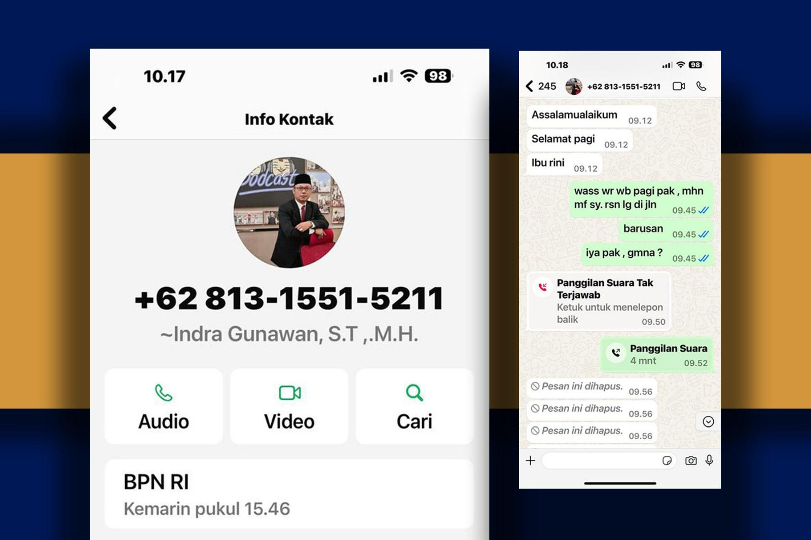 “Halo ibu, saya Indra Gunawan. BPN,” kata si penipu.
