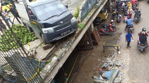 “Kayaknya supirnya nggak sengaja nginjak gas, sehingga ketabrak dinding pembatas itu, lalu jatuh ke bawahnya,” ucap Amin, salah satu Porter barang di lokasi tersebut.