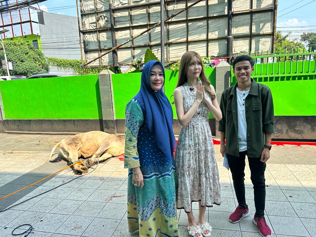 Asahina Mana mengikuti berbagai kegiatan bersama Baba Foundation, mulai dari ramah-tamah dengan warga, minum kopi Liong, menyaksikan proses gotong-royong serta membagikan daging hewan qurban.