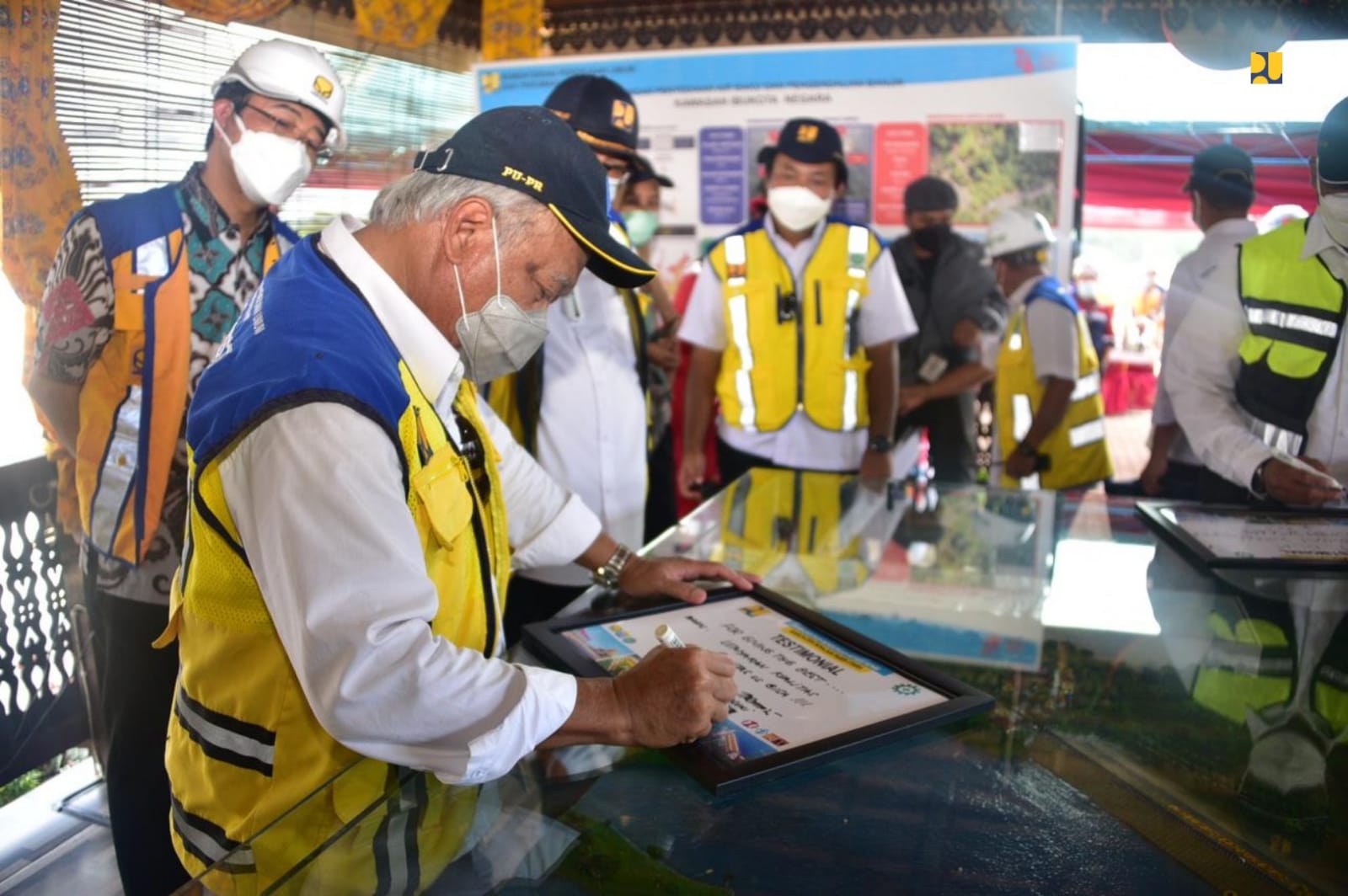Menteri PUPR Basuki Hadimuljono dalam kunjungan kerjanya ke Provinsi Kalimantan Timur, Jumat (8/10/2021) meninjau progres Bendungan Sepaku Semoi yang telah dimulai konstruksinya sejak Juli 2020.