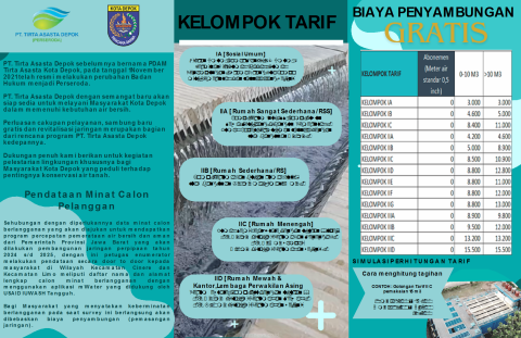 Informasi lebih lengkap bisa didapatkan melalui website www.tirtaasastadepok.co.id atau dengan menghubungi Contact Person di nomor 0857-9429-7499 atau 0858-9429-7500.