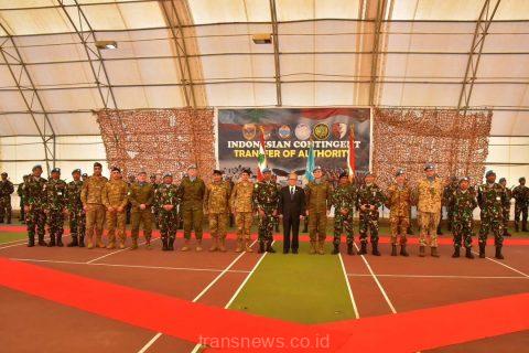 LEBANON, transnews.co.id – Head of Mission and Force Commander of the United Nations Interim Force in Lebanon (UNIFIL) Major General Aroldo Lázaro Sáenz pimpin serah terima jabatan Komandan Kontingen Garuda UNIFIL dari pejabat lama Kolonel Inf Syafruddin kepada pejabat baru Kolonel Inf Mohamad Goffar berlangsung dalam Upacara Transfer Of Authority (TOA) yang di laksanakan di Rubhall Unifil HQ, Naqoura, Lebanon Selatan. Selasa, (05/03/2024).