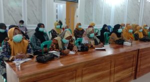 Kepala UPT Puskesmas Kec Caringin Rudani S.Kep dalam arahannya mengatakan ikuti acara pelatihan ini dengan tetap perhatikan Protokol Kesehatan serta jaga jarak.