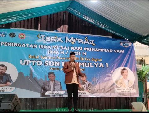 DEPOK, transnews.co.id – UPTD SDN Kalimulya 1 Depok, menggelar Peringatan Isra Mi’raj Nabi Muhammad SAW 1446 H/2025 M mengangkat tema “Bekal spiritual peserta didik di era digital” pada Sabtu, (15/02/2025).