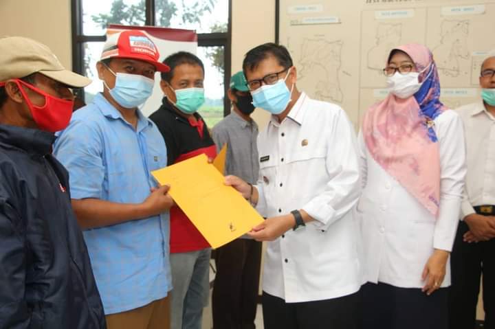 Subang,transnews.co.id-Tiga Kelompok Tani yang tergabung dalam Gapoktan Karya Tani Desa Neglasari Kecamatan Pagaden Subang Jawa Barat dikukuhkan Wabup Subang, Agus Masykur Rosyadi di aula kantor Desa Neglasari,Rabu (10/2/2021).