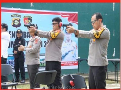 Pol Agus Halimuddin SIK,MH, Kabid Humas Polda Kombes Pol Sunarto dan beberapa PJU yang berkesempatan hadir untuk mengikuti latihan menembak. (YN/Salim)