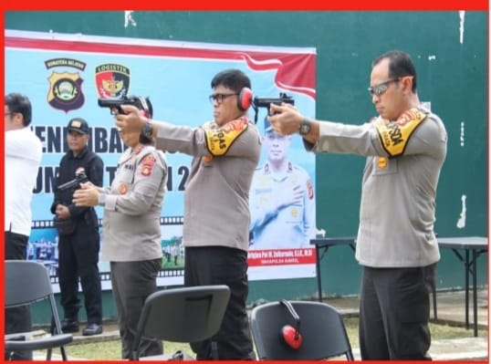 Dalam melakukan latihan menembak pagi ini Wakapolda Sumsel didampingi juga oleh Karorena Polda Sumsel Kombes Pol Toto Wibowo,Karo SDM Polda Sumsel Kombes Pol Sudrajad Hariwibowo, SIK,MSI