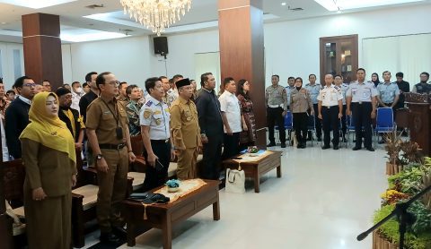 saat menyayikan Indonesia Raya pada Renja Dishub Kota Depok, Senin 03 Maret 2025