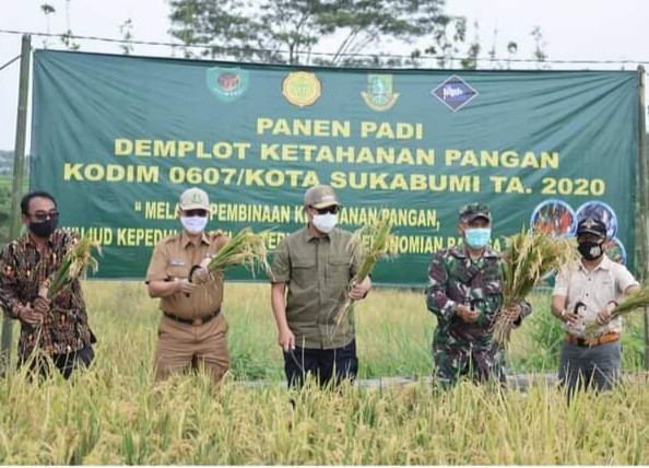 Tanam padi di area wilayah Kodim 0607 Kota Sukabumi untuk memperkuat ketahanan pangan di Kota Sukabumi selama masa pandemi.