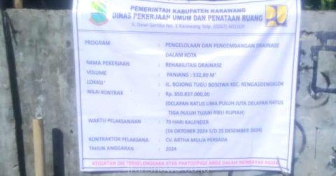 KARAWANG, transnews.co.id – Pembangunan Drainase U-ditch yang sedang dikerjakan diseputar wilayah Dusun Krajan A, RT 002/001, Desa Kertasari, Kecamatan Rengasdengklok, Kabupaten Karawang, Provinsi Jawa Barat sudah sesuai harapan warga lingkungan. Jumat (22/11/2024).